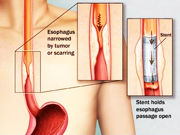 During the procedure, the surgeon places a long, thin tube (catheter) down the back of your mouth and into your esophagus. Next, the surgeon places a folded-up hollow tube (stent) over the catheter in the correct position across the blockage. The stent expands against the walls of your esophagus, giving support. Then the surgeon removes the catheter and leaves the stent in place.