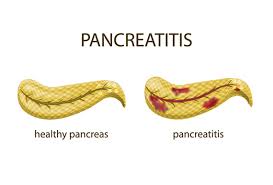 An inflammation of the organ lying behind the lower part of the stomach (pancreas). The pancreas is a gland located in the upper part of the abdomen. It produces two main types of substances: digestive juices and digestive hormones. Inflammation of the pancreas is termed pancreatitis and its inflammation has various causes. Once the gland becomes inflamed, the condition can progress to swelling of the gland and surrounding blood vessels, bleeding, infection, and damage to the gland. There, digestive juices become trapped and start "digesting" the pancreas itself. If this damage persists, the gland may not be able to carry out normal functions. Pancreatitis may be acute (new, short-term) or chronic (ongoing, long-term). Either type can be very severe, even life-threatening. Either type can have serious complications. Pancreatitis may start suddenly and last for days or it can occur over many years. It has many causes, including gallstones and chronic, heavy alcohol use. Symptoms include upper abdominal pain, nausea and vomiting. Treatment usually requires hospitalisation. Once they stabilise the patient, doctors treat the underlying cause.